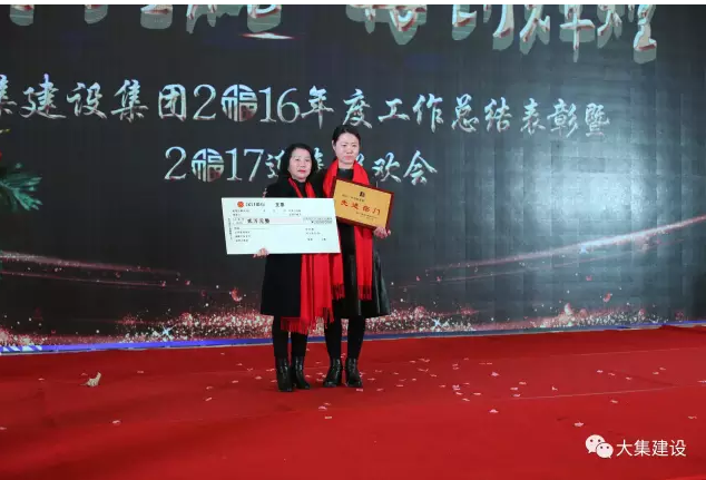 為樹立典型、激勵先進,讓廣大員工在工作中奮勇向前,形成人人爭先的良好企業(yè)文化氛圍,2016年大集建設總結(jié)表彰大會上,集團公司副總吳家珍女士代表集團公司宣讀了《關(guān)于表彰2016年度優(yōu)秀、先進集體與個人的決定》,并邀請嘉賓上臺頒發(fā)了五大獎項及先進個人獎:特別敬業(yè)獎、特殊貢獻獎、先進部門、優(yōu)秀項目部和外部業(yè)務拓展獎。