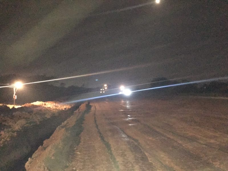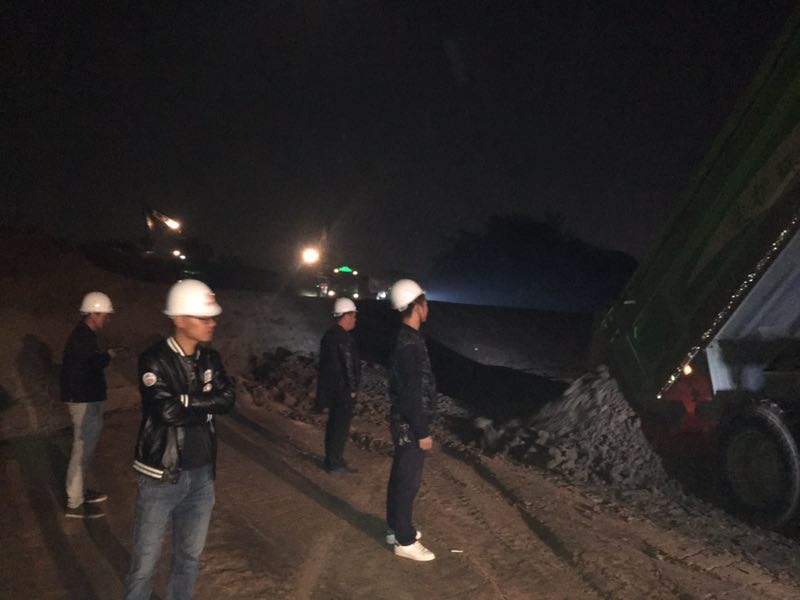明亮的探照燈刺破黑暗的夜瓊,開辟出一片亮色。亮光里,絡(luò)繹不絕的車輛安靜行進,相隔不遠的施工人員有序指揮,裝載,回填,推土、碾壓,所有的工序有條不紊,一條寬闊的路基漸漸成型!