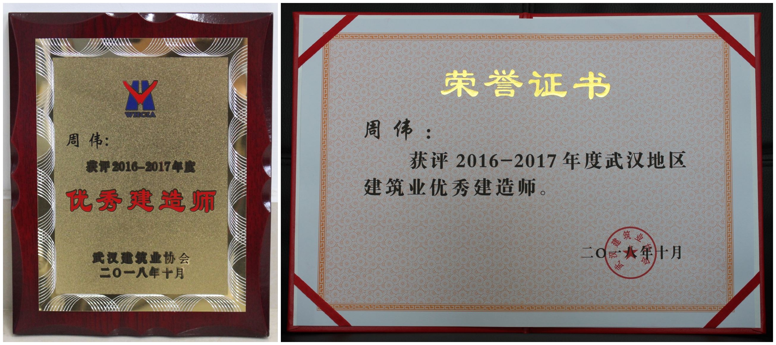 項(xiàng)目經(jīng)理周偉榮獲“2016-2017年度武漢地區(qū)建筑業(yè)優(yōu)秀建造師”稱號(hào)