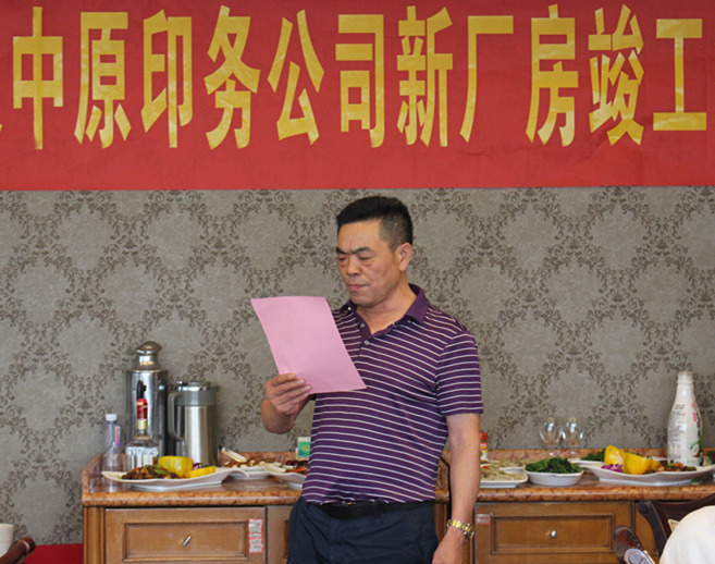 6月26日,武漢中原印務(wù)有限責(zé)任公司隆重舉行新廠房竣工答謝會(huì),集團(tuán)副總經(jīng)理徐家富、項(xiàng)目經(jīng)理田建新、招投標(biāo)部部長(zhǎng)胡鵬、財(cái)務(wù)部部長(zhǎng)鄧雪芬等受邀出席。