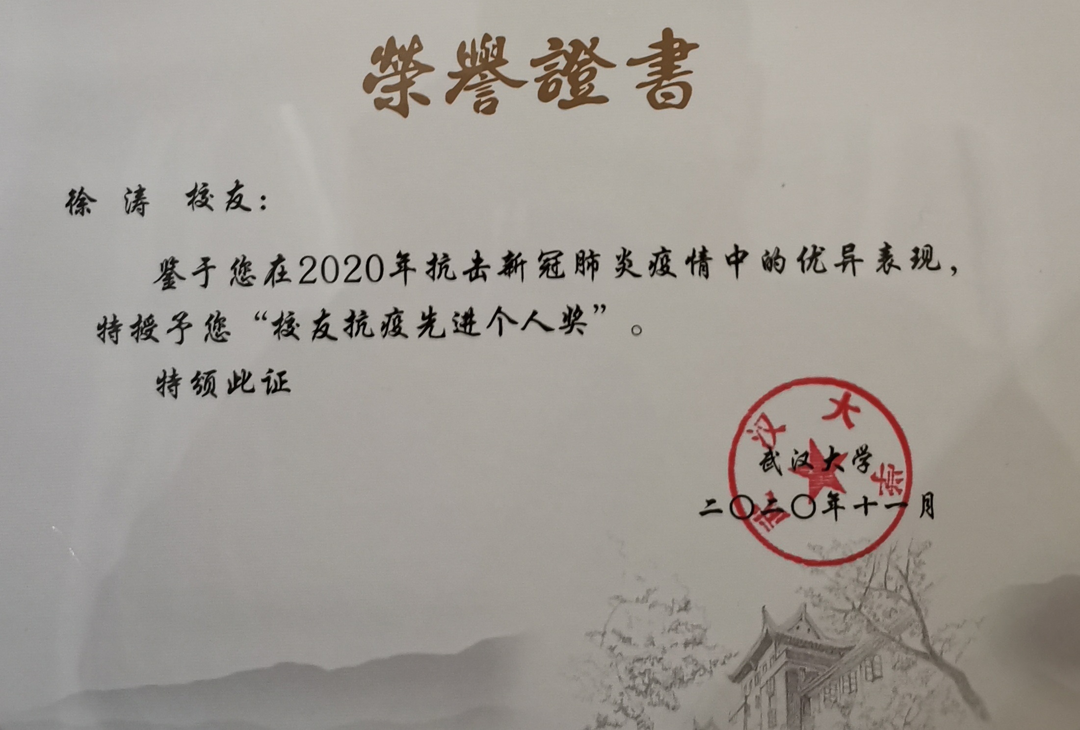 武漢大學(xué)“校友抗疫先進(jìn)個(gè)人”表彰