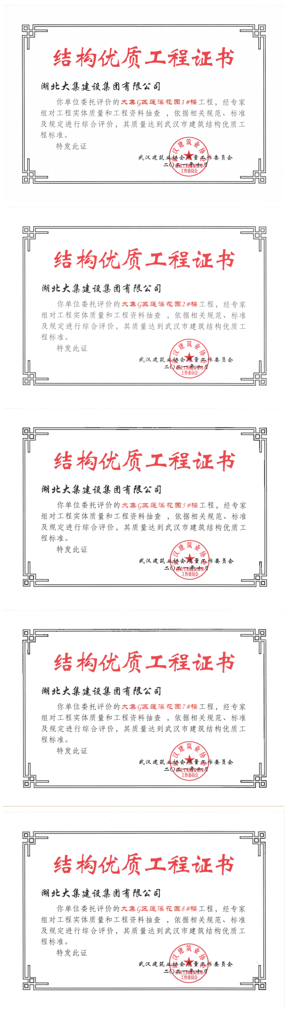 近日,由湖北大集建設(shè)集團(tuán)承建的大集G區(qū)蓮溪花園項目1#、2#、5#、7#、8#樓榮獲“武漢市建筑結(jié)構(gòu)優(yōu)質(zhì)工程”榮譽(yù)。