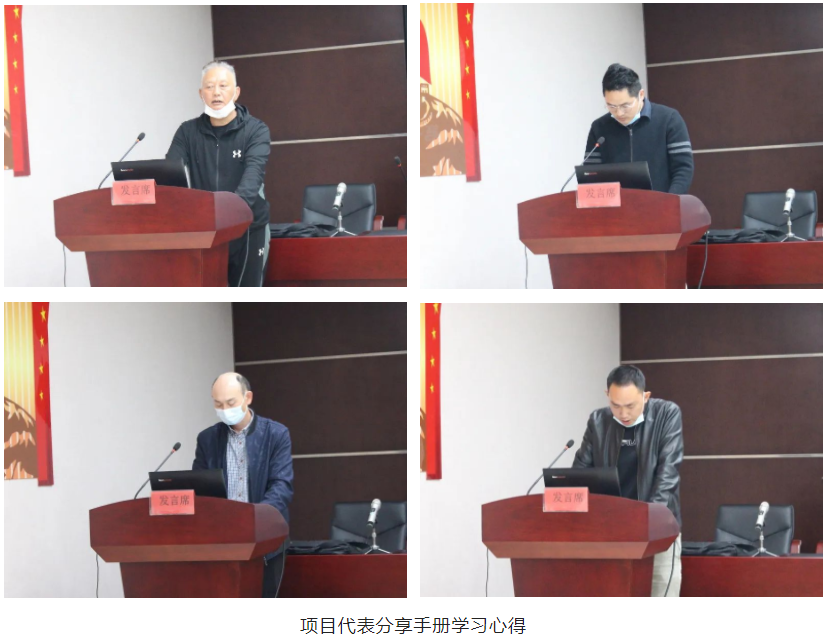 項目經(jīng)理代表周感書、房建施工員代表魏巍、房建安全員代表張彥偉以及市政施工員代表彭文杰依次上臺,從不同角度分享了他們對《湖北省質(zhì)量安全手冊》的學(xué)習(xí)心得。