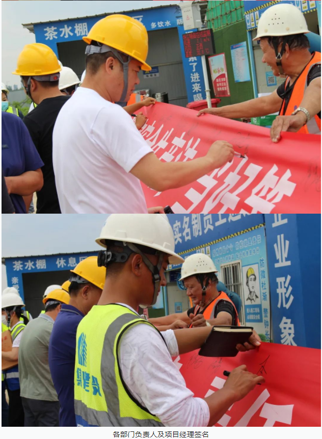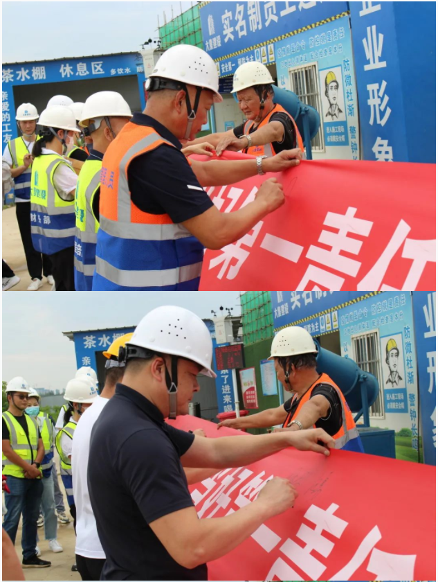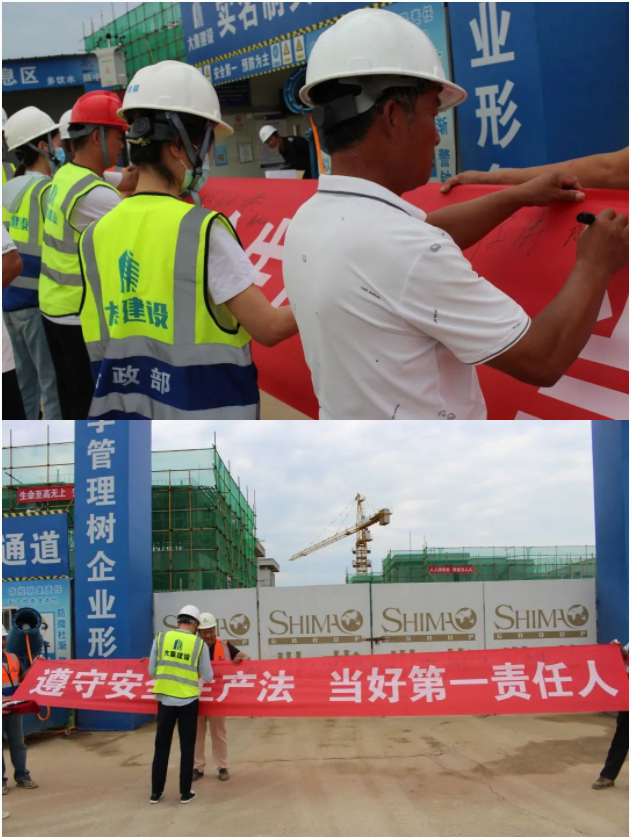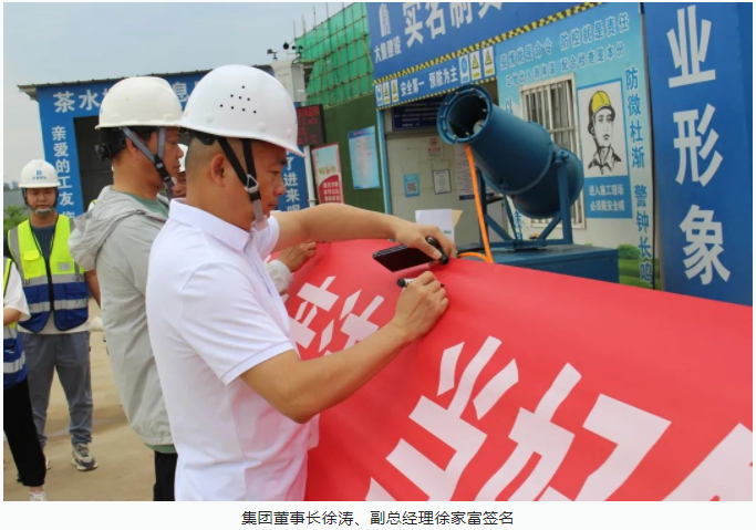 活動開始,集團董事長徐濤、副總經(jīng)理徐家富及各部門負責人、各項目經(jīng)理率先在“遵守安全生產(chǎn)法,當好第一責任人”條幅上鄭重簽名,寫下對肩負安全生產(chǎn)責任的承諾,隨后各項目施工員、安全員紛紛在條幅上寫下自己的名字,表達對做好安全生產(chǎn)相關(guān)工作的信心和決心。