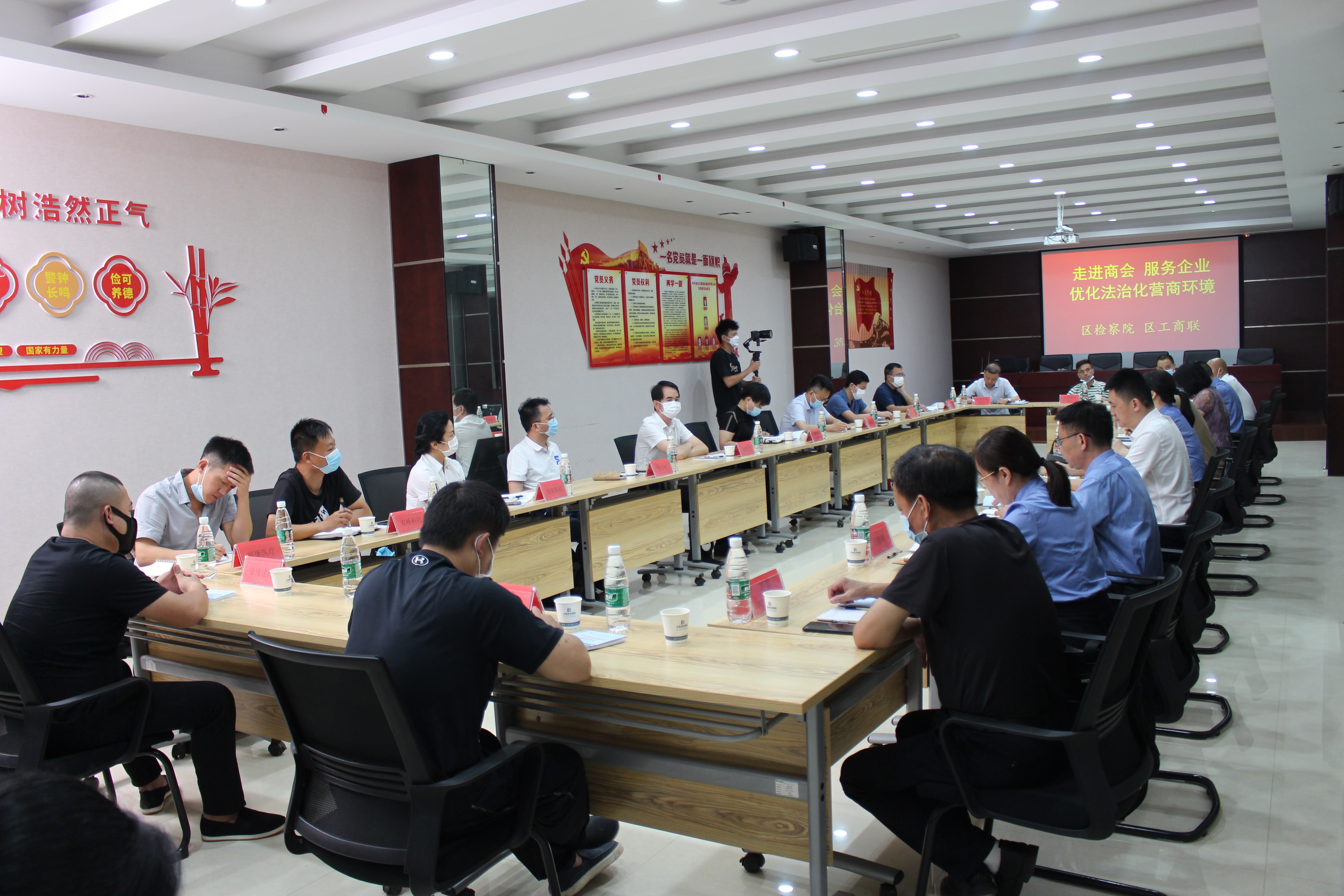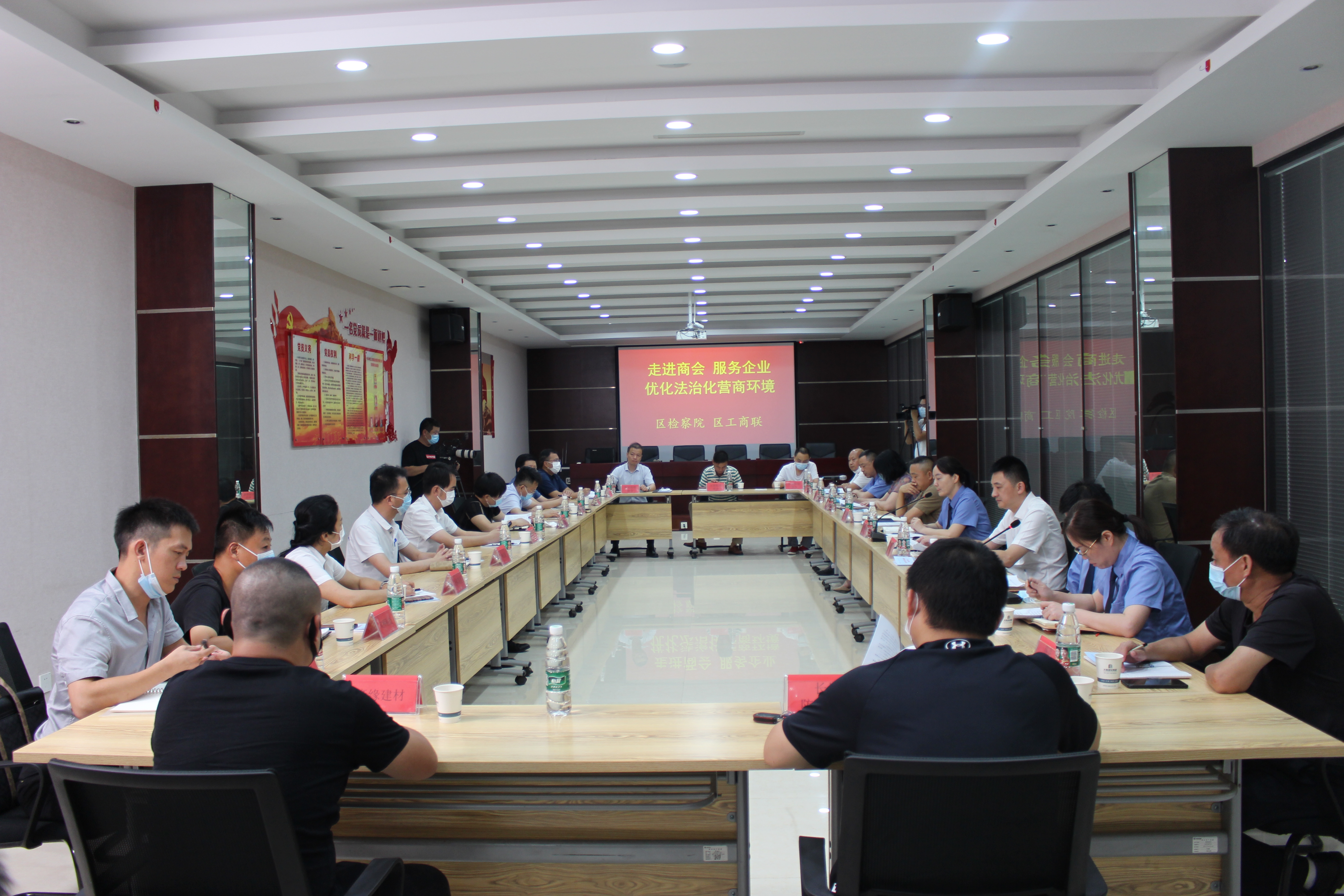 7月26日下午,蔡甸區(qū)檢察院聯(lián)合區(qū)工商聯(lián)組織的“走進(jìn)商會(huì) 服務(wù)企業(yè)優(yōu)化法治化營(yíng)商環(huán)境”座談會(huì)在集團(tuán)公司一樓會(huì)議室隆重召開(kāi)。區(qū)工商聯(lián)黨組書(shū)記周文利、主席徐濤、副主席陳小萍,區(qū)檢察院黨組書(shū)記、檢察長(zhǎng)羅永鑫,黨組副書(shū)記、副檢察長(zhǎng)陳邦華,檢委會(huì)專職委員夏遠(yuǎn)高,各商會(huì)會(huì)長(zhǎng)及企業(yè)家代表參加會(huì)議并交流發(fā)言。