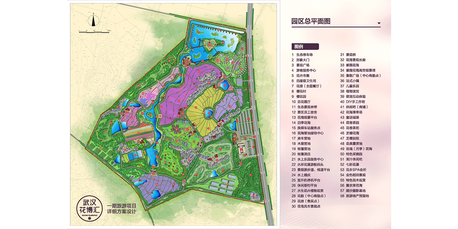 武漢花博匯總投資50億元,總規(guī)劃面積4800畝,邀請(qǐng)國(guó)際頂尖設(shè)計(jì)團(tuán)隊(duì)擔(dān)綱設(shè)計(jì),以“村-田-林-溪-塘”場(chǎng)地肌理為基礎(chǔ),以創(chuàng)意型花海景觀打造為主題,竭力打造集花卉旅游觀光、文化傳承交流、創(chuàng)意農(nóng)業(yè)體驗(yàn)、田園養(yǎng)生度假、親水休閑游樂(lè)、美麗鄉(xiāng)村體驗(yàn)、花卉集中展銷等諸多功能于一體的全國(guó)性精品休閑度假綜合體,滿足城市人群回歸自然、城郊休憩、體驗(yàn)野趣、養(yǎng)生度假等極致追求。