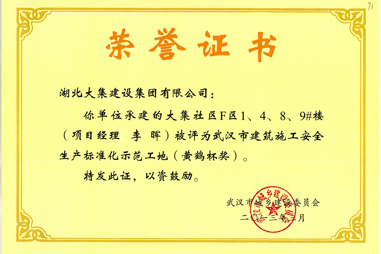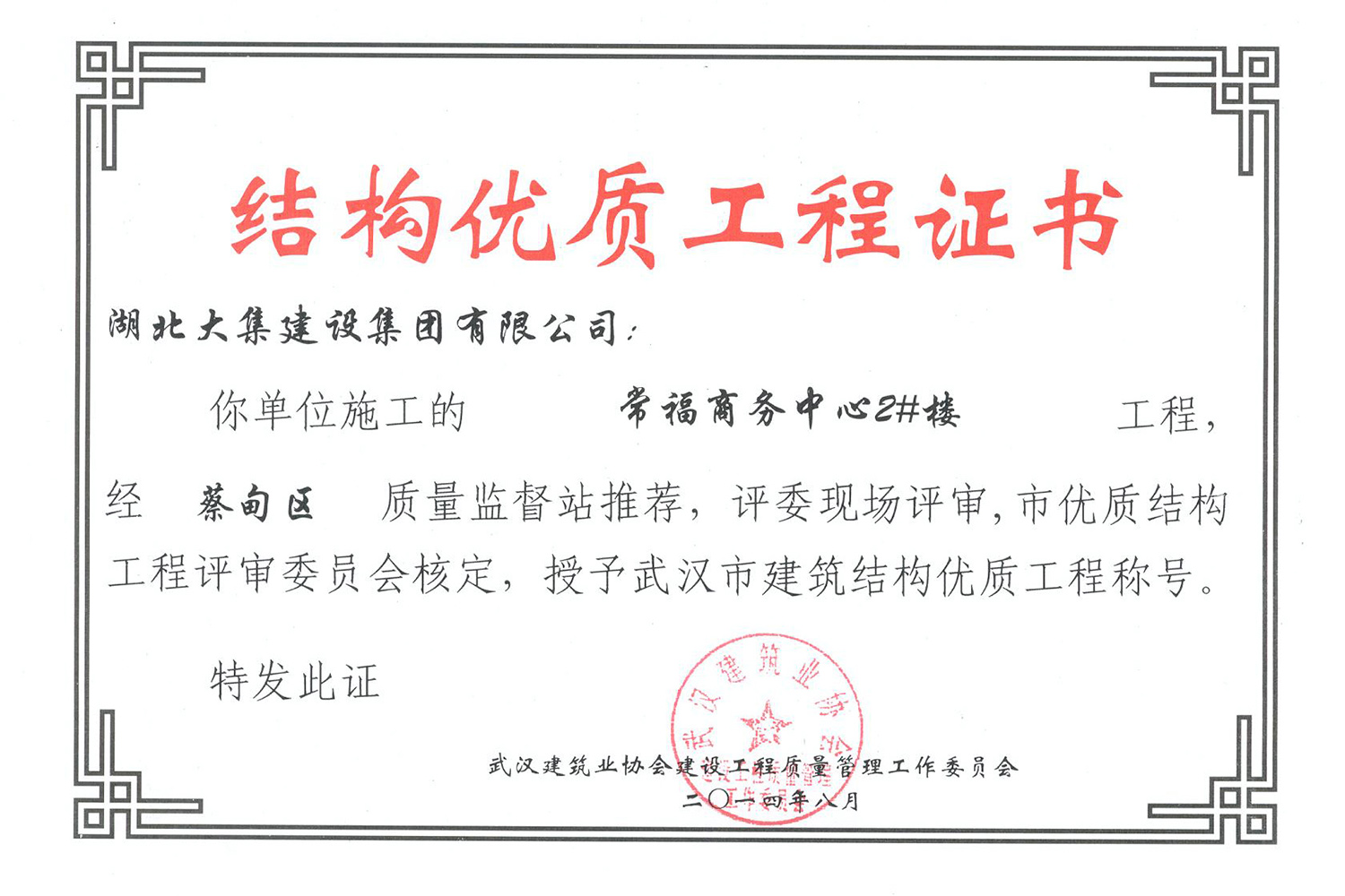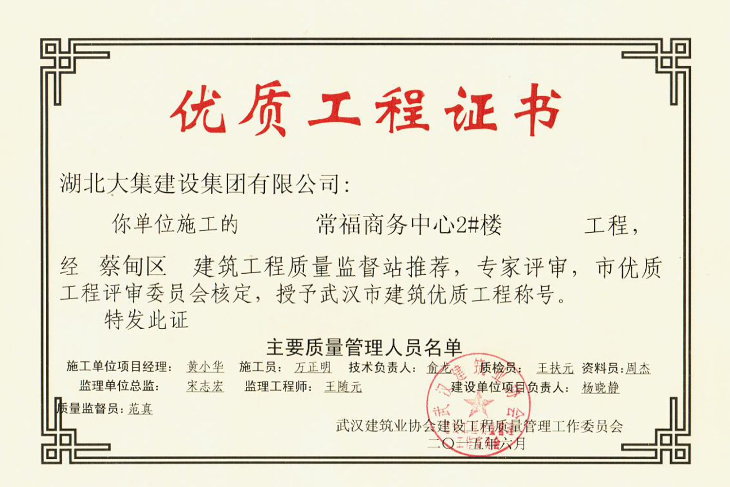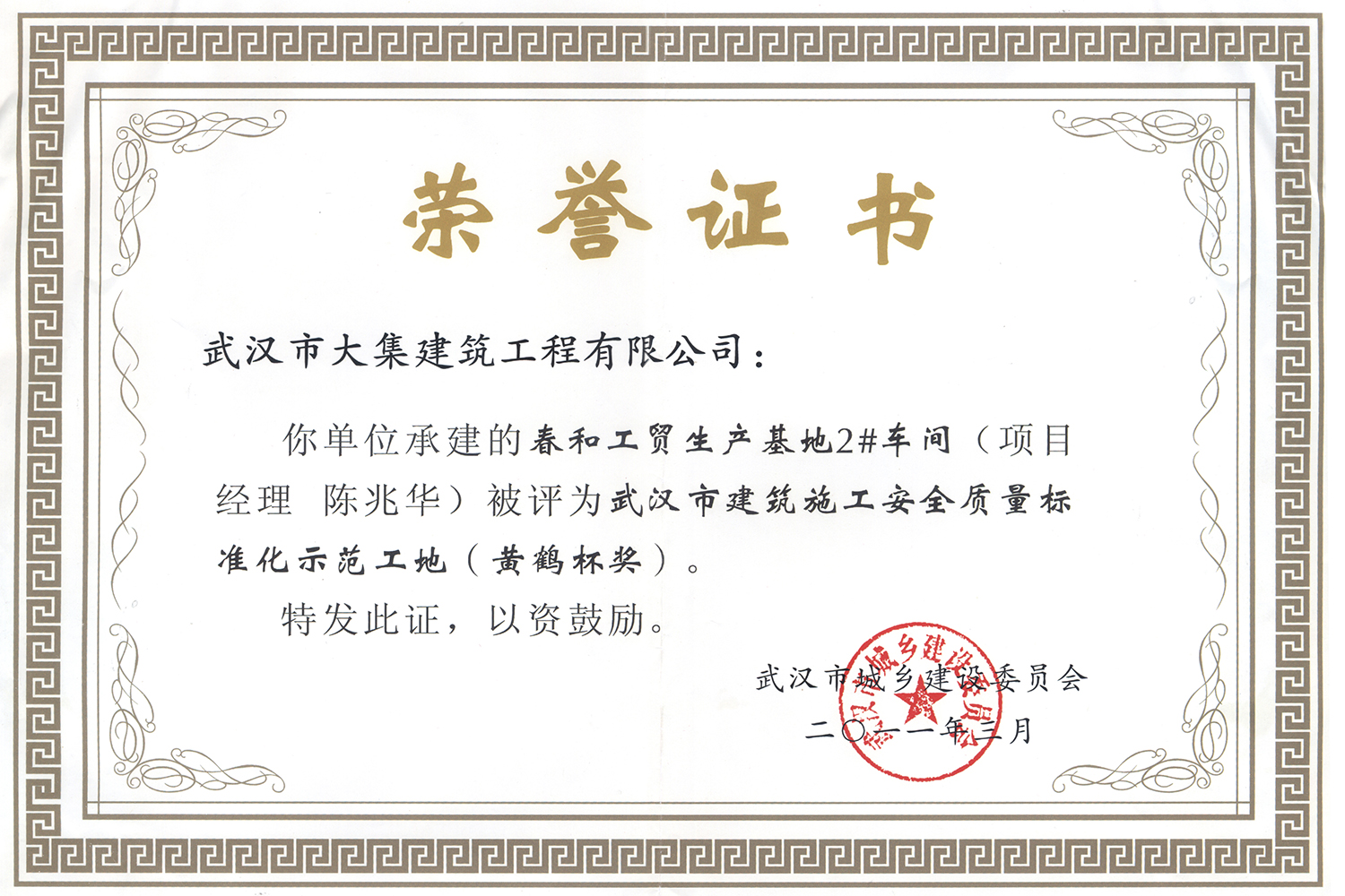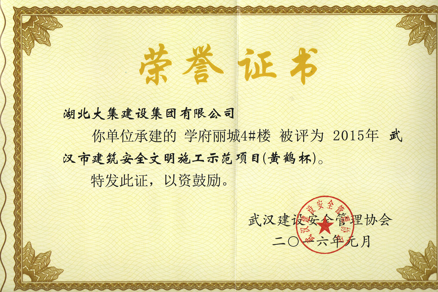 集團(tuán)秉持“安全是紅線,質(zhì)量是品牌,文明施工是形象”的企業(yè)宗旨,不斷加強(qiáng)全面管理,注重提高自身素質(zhì),以完美的履約、優(yōu)良的質(zhì)量、滿意的服務(wù),贏得了信譽(yù)。近年來(lái),湖北大集建設(shè)集團(tuán)先后與中石化集團(tuán)、中鐵上海工程局、中建八局、中鐵十二局、碧桂園集團(tuán)、世茂集團(tuán)、綠地集團(tuán)等央企、國(guó)企、地方標(biāo)志性建設(shè)單位合作,先后承建了“碧桂園知音豪庭”項(xiàng)目、“碧桂園光谷云境”項(xiàng)目、“大集G區(qū)蓮溪花園”項(xiàng)目等多個(gè)高層住宅小區(qū);承建了世茂龍灣46#、47#、48#地塊、花博匯桃李春風(fēng)二期等多個(gè)精品高端別墅群項(xiàng)目;承建了“南湖中學(xué)”、“南湖小學(xué)”、“南湖幼兒園”、“博奧幼兒園”等多個(gè)教育配套項(xiàng)目;承建了“孝感英眾超算終端科技產(chǎn)業(yè)園”、“鴻盛華全球航空服務(wù)產(chǎn)業(yè)園”、“盟盛汽車產(chǎn)業(yè)園”、“中原印務(wù)晶毅”等多個(gè)具有特殊設(shè)備安裝需求的鋼、混結(jié)構(gòu)工業(yè)廠房項(xiàng)目;承建了“常福商務(wù)廣場(chǎng)”等大型商業(yè)綜合體;承建了后官湖綠道二期、三期,常貴路西延伸段、黃星大道等多條大型道路市政項(xiàng)目;自主開發(fā)了“聚盛晶尚”住宅項(xiàng)目,改善人居環(huán)境,引領(lǐng)綠色棲居新領(lǐng)域;所有工程嚴(yán)格執(zhí)行施工作業(yè)全過(guò)程質(zhì)量、安全管理,多個(gè)項(xiàng)目被省、市級(jí)監(jiān)管單位授予“省結(jié)構(gòu)優(yōu)質(zhì)”、“省安全文明施工現(xiàn)場(chǎng)”、“市結(jié)構(gòu)優(yōu)質(zhì)”、“市安全文明施工示范項(xiàng)目”、“樣板工地”等榮譽(yù)稱號(hào)。