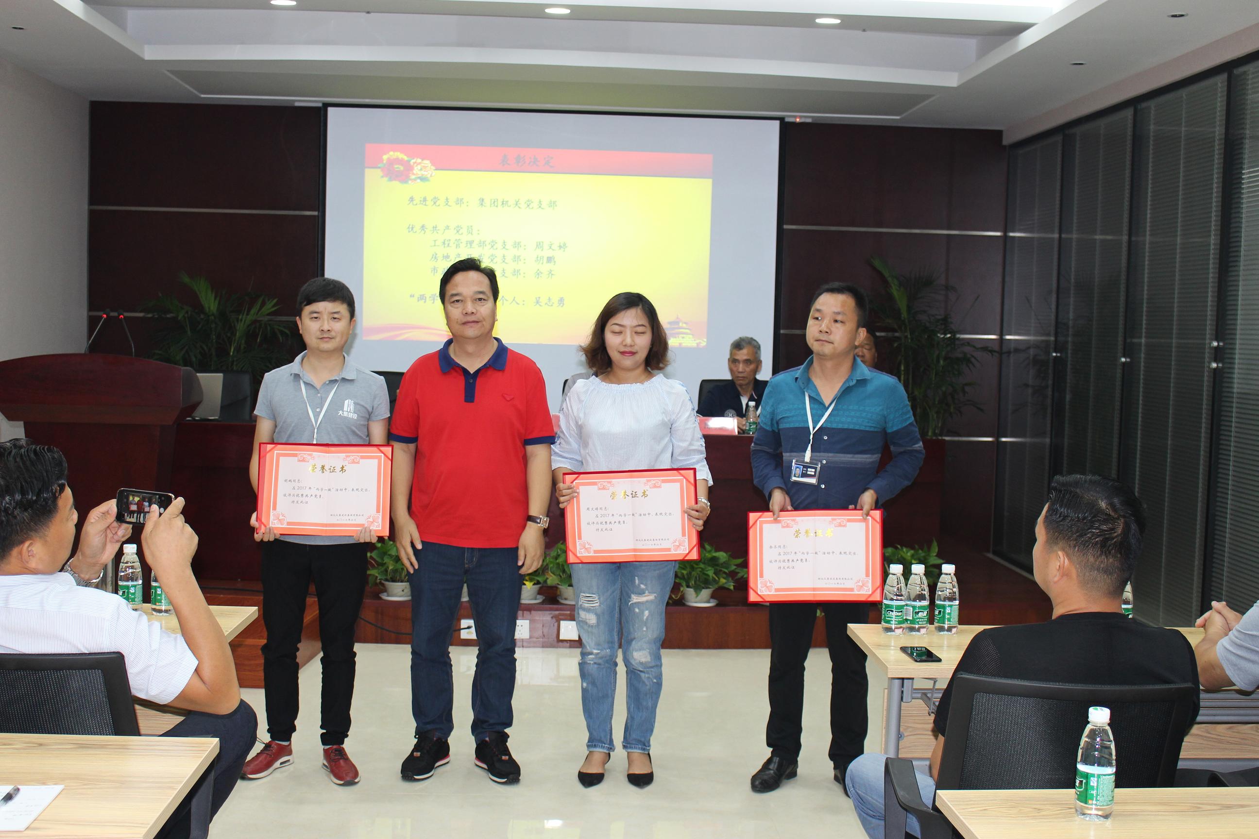接著,由工程管理部黨支部書記徐家富同志宣讀中共湖北大集建設集團有限公司黨委《關于集團公司黨委和支部人員組成的決定》及《關于表彰先進黨支部、優(yōu)秀黨員的決定》。