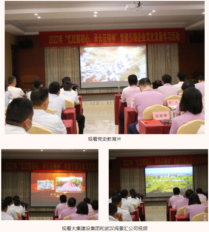 為慶祝建黨101周年,進(jìn)一步推進(jìn)黨史學(xué)習(xí)教育,增強(qiáng)隊伍凝聚力、向心力與戰(zhàn)斗力,湖北大集建設(shè)集團(tuán)聯(lián)合武漢閱景匯公司于6月16日上午共同開展2022年“憶紅船初心,承長征精神”黨建引領(lǐng)企業(yè)文化發(fā)展學(xué)習(xí)活動,兩家公司的全體黨員、入黨積極分子以及中高層領(lǐng)導(dǎo)、優(yōu)秀骨干員工參加了學(xué)習(xí),會議由湖北大集建設(shè)集團(tuán)黨支部書記徐遠(yuǎn)征主持。