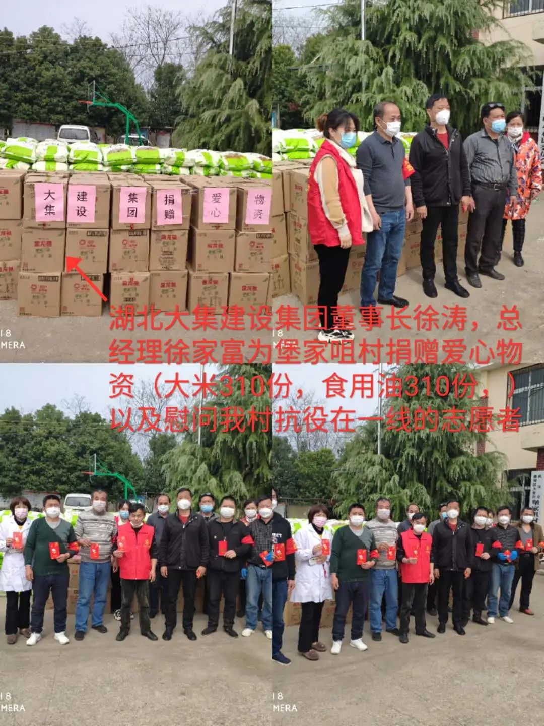 徐總代表集團(tuán)慰問一線志愿者,代表集團(tuán)向堡家嘴村每家每戶捐贈(zèng)50斤大米、5升油,物資累計(jì)價(jià)值12萬元
