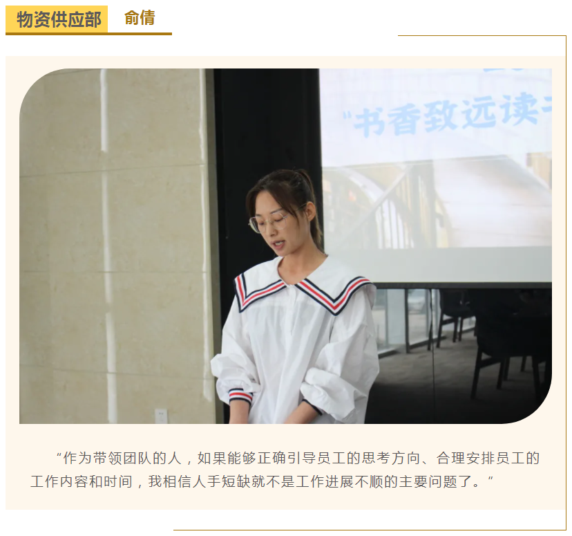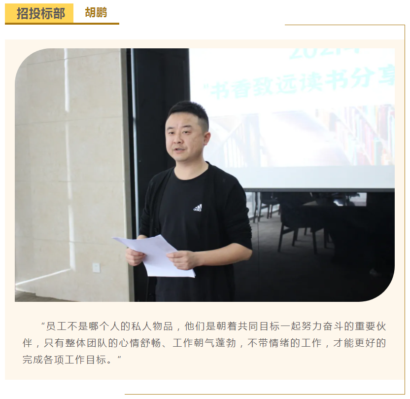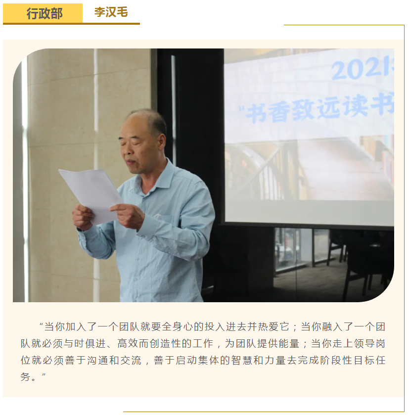 此次中高層領(lǐng)導(dǎo)共讀并分享的書籍是《麥肯錫團(tuán)隊(duì)管理法》,集團(tuán)公司七位部門負(fù)責(zé)人依次上臺,結(jié)合各自的實(shí)際工作、管理經(jīng)驗(yàn)等,對書中的觀點(diǎn)進(jìn)行闡述與分析。在思想交流碰撞中,各位部門負(fù)責(zé)人進(jìn)一步加深了對團(tuán)隊(duì)管理的認(rèn)識,反思了自己在部門管理中存在的問題,了解了更多的管理細(xì)節(jié),學(xué)習(xí)了更有效的管理方法,為今后更好地完成日常管理工作打下了堅(jiān)實(shí)的基礎(chǔ)。