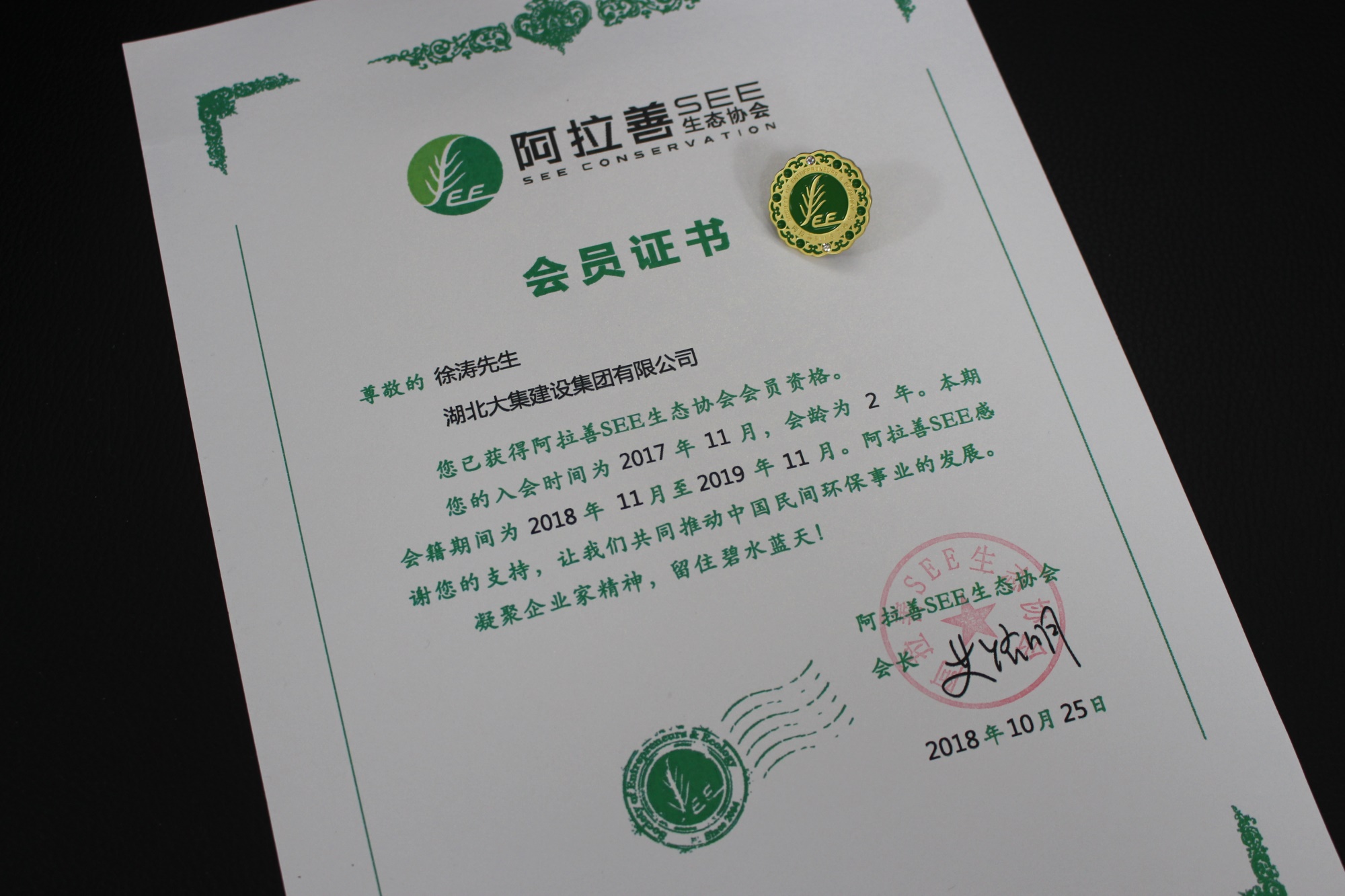 2017年11月,集團(tuán)董事長(zhǎng)徐濤攜湖北大集建設(shè)集團(tuán)正式加入中國(guó)最具影響力的環(huán)境保護(hù)公益組織——阿拉善SEE生態(tài)協(xié)會(huì),正式成為阿拉善SEE會(huì)員。到如今,集團(tuán)加入阿拉善SEE生態(tài)協(xié)會(huì)已經(jīng)第二個(gè)年頭了。